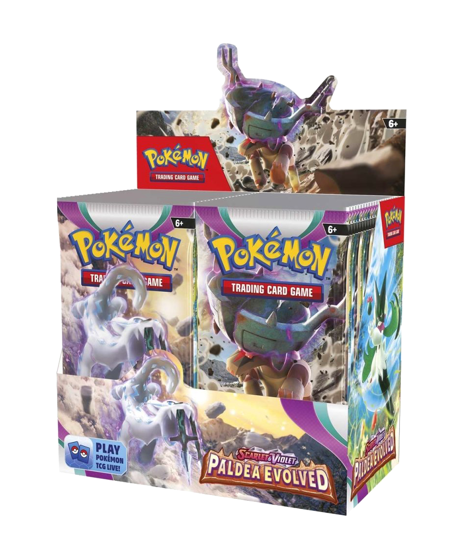 Caja de 36 Sobres de refuerzo de la expansión - Escarlata y Púrpura - Evoluciones en Paldea - de Pokémon TCG en Español.