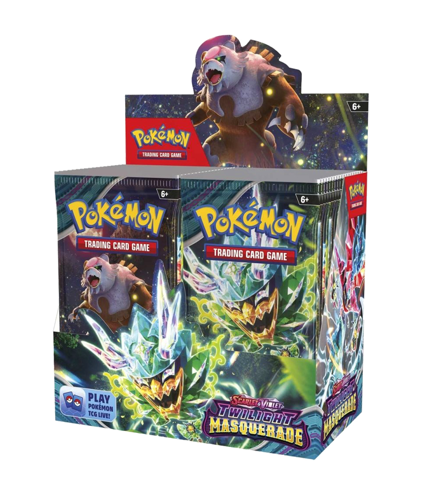 Caja de 36 Sobres de refuerzo de la expansión - Escarlata y Púrpura - Mascarada Crepuscular - de Pokémon TCG en Español.